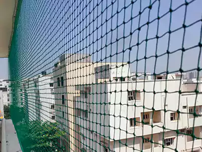 We specialize in installing safety nets for a variety of applications, including balcony safety, pigeon control, anti-bird protection, cricket practice, child safety, construction sites, duct areas, buildings, industrial facilities, swimming pools, stairways, monkey prevention, terrace protection, glass protection, car parking, coconut trees, and more. Our extensive range of safety nets includes options made from HDPE and nylon.